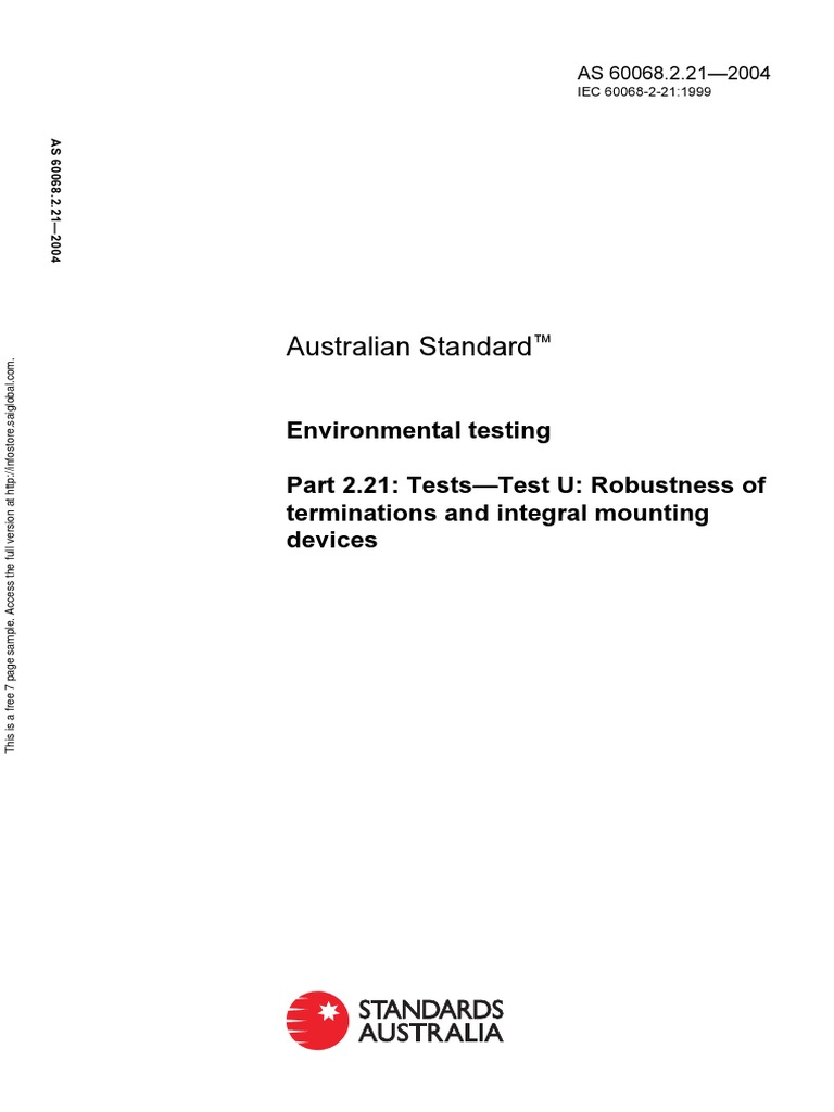 As 60068 2 21 2004 Environmental Testing Tests Test U